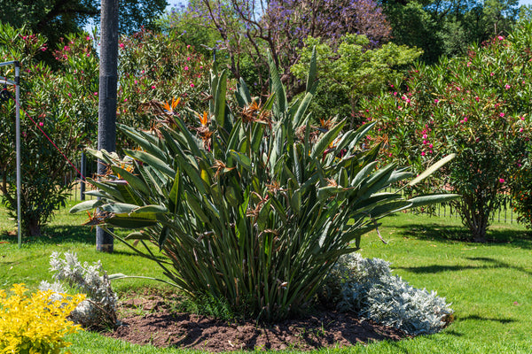 Le Strelitzia a besoin d'un sol humide, mais pas détrempé. Assurez-vous de l'arroser régulièrement, en veillant à ne pas mouiller les feuilles. Il apprécie également un arrosage occasionnel avec un engrais tous les mois en été et tous les deux mois en hiver. Éliminez les feuilles mortes et les tiges flétries pour encourager une croissance saine.